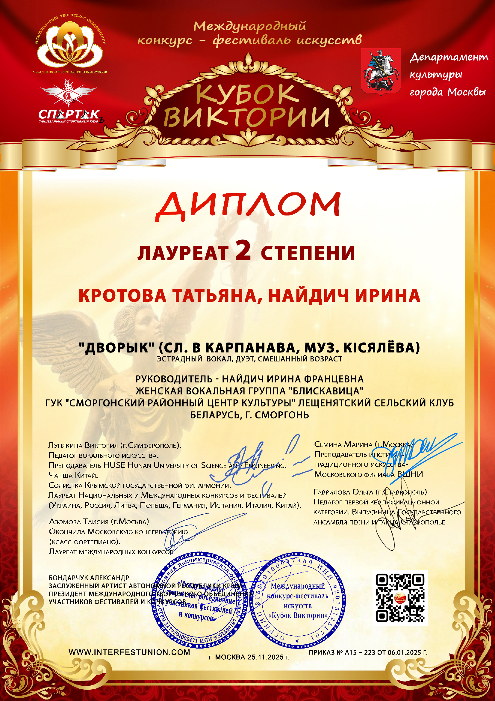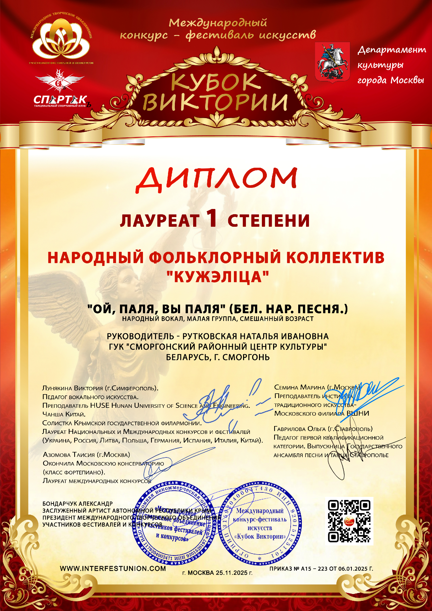 Представители ГУК «Сморгонский районный центр культуры» вновь блестяще заявили о себе на Международном конкурсе-фестивале искусств «Кубок Виктории» в Москве и завоевали заслуженные награды!