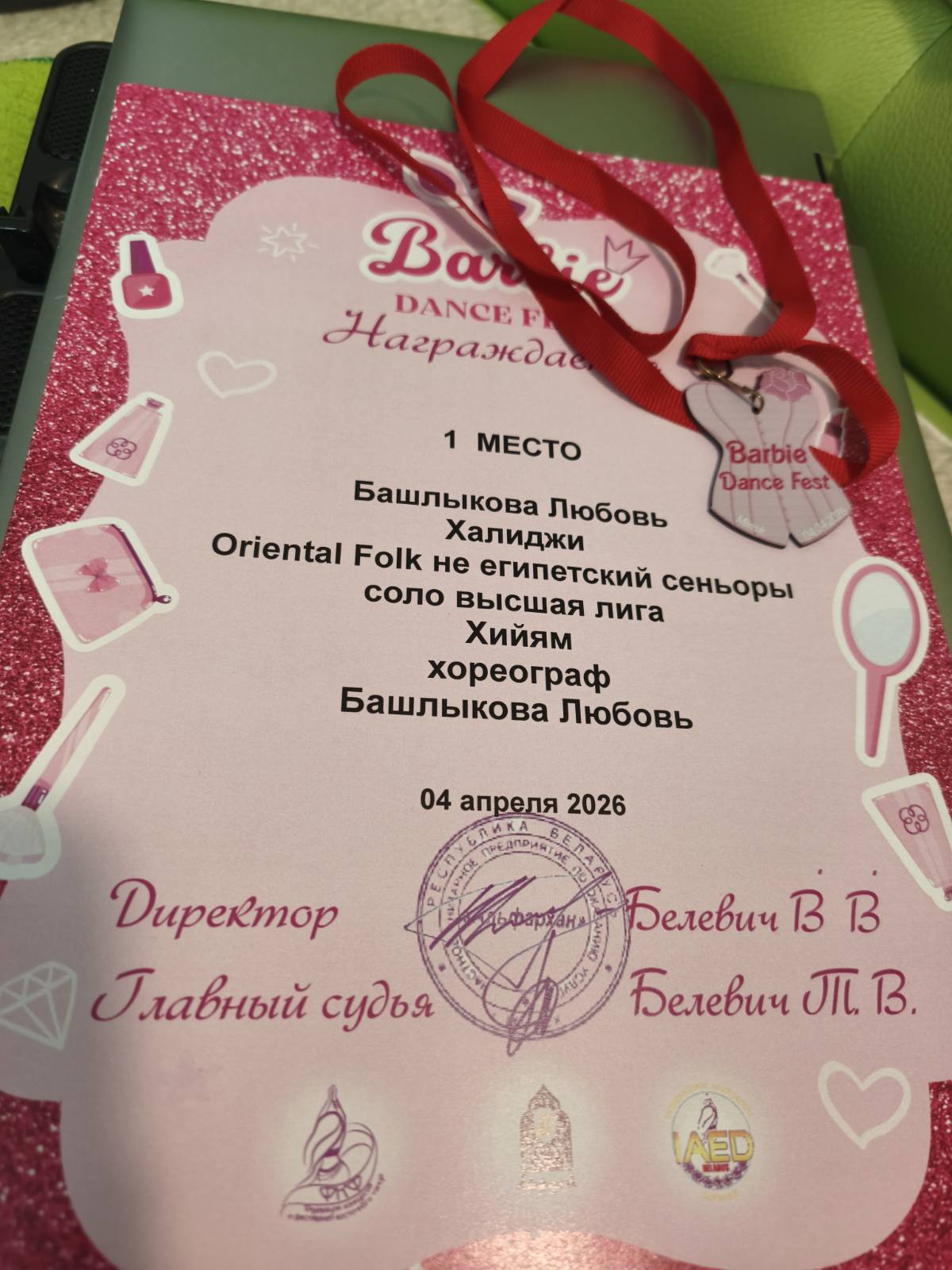 • Диплом за 1 место: Башлыкова Любовь (хореограф кружка восточного танца «Хийям») - направление халиджи Oriental Folk, не египетский, сеньоры (соло, высшая лига).