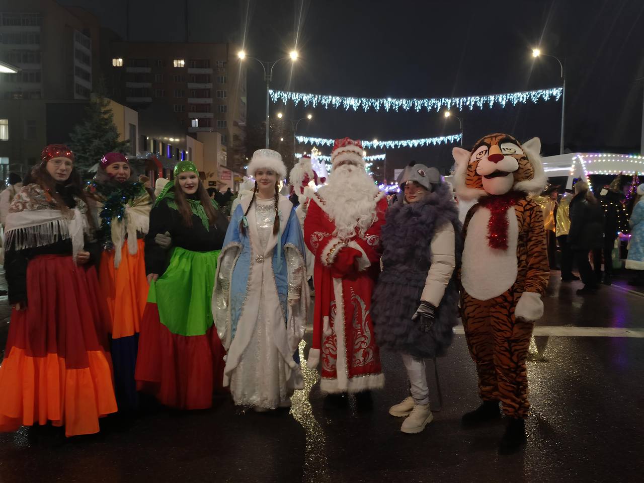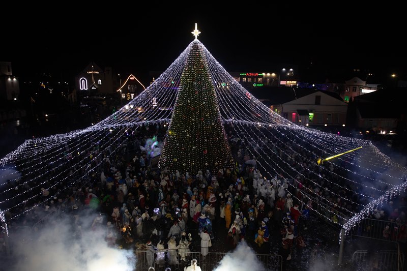 Сначала артисты театра «Ларчик» показали удивительное представление прямо среди зрителей, вовлекая всех в действо. Затем под дружные аплодисменты загорелись огни на главной ёлке. Финалом вечера стала дискотека под открытым небом с зажигательной музыкой от DJ. Танцевали абсолютно все – и дети, и взрослые.