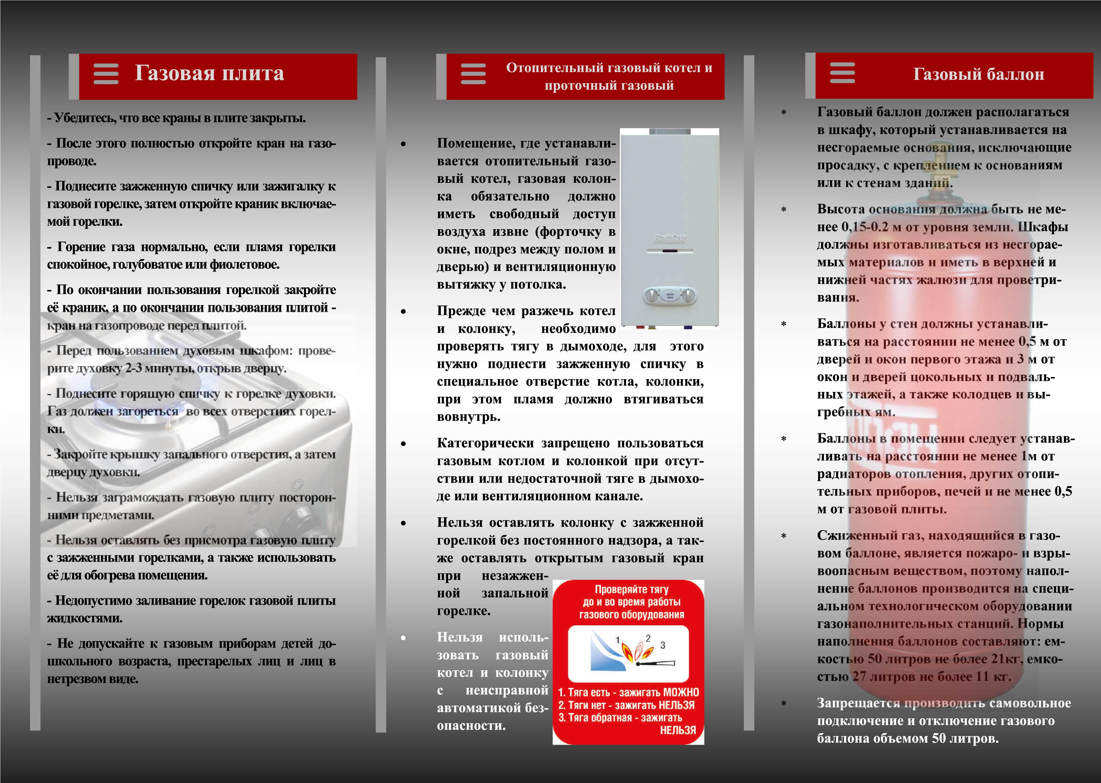 - своевременно проходить инструктаж по правилам пользования газом.