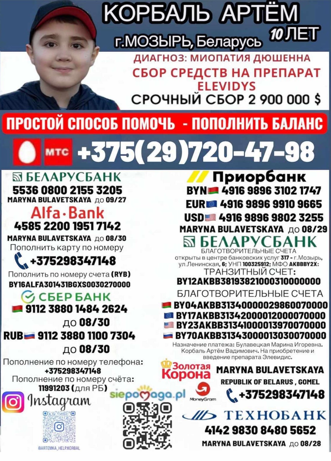 «Учитывая тип тяжести и стремительность развития заболевания, - пишет мама Артема Марина, - нами было принято решение о проведении лечения самым дорогим препаратом в мире, ELEVIDYS, стоимость которого очень высока - 2 900 000 долларов США. Препарат появился только в 2023 году, в 2024 сняли возрастные ограничения на его применение.