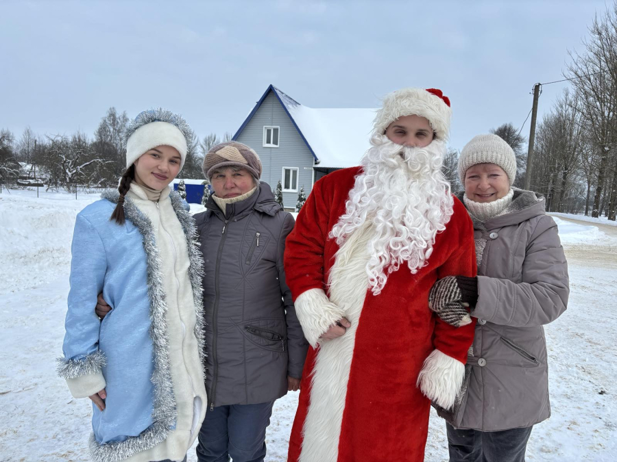 Праздничная программа прошла в деревнях Шутовичи и Байбы. Главные новогодние персонажи - Дед Мороз и Снегурочка - пришли в гости к сельским жителям, чтобы подарить им радость, внимание и хорошее настроение
