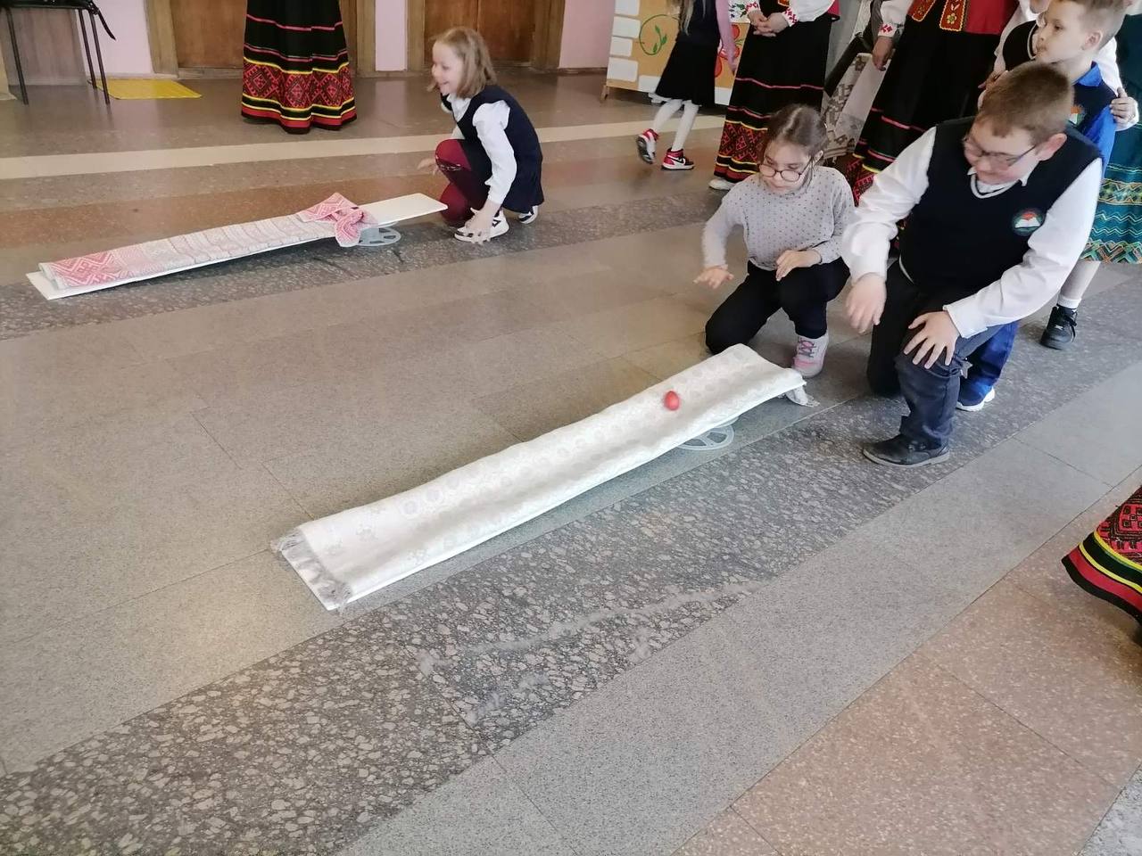 На мероприятие были приглашены ребята, которым сперва рассказали об истории праздника и его традициях, а затем окунули их в мир народных забав. Мальчишки и девчонки с удовольствием участвовали в пасхальных эстафетах и веселых играх.